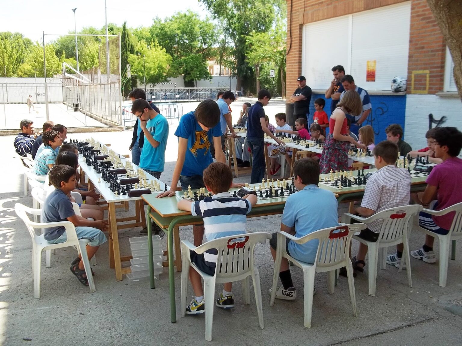 En primer plano de la foto aparece Manolo de la Guía, concejal de deportes de Alcázar, junto a algunos padres y madres asistentes a la reunión del campus Coincidiendo con la clausura de la temporada 2010/2011 en las