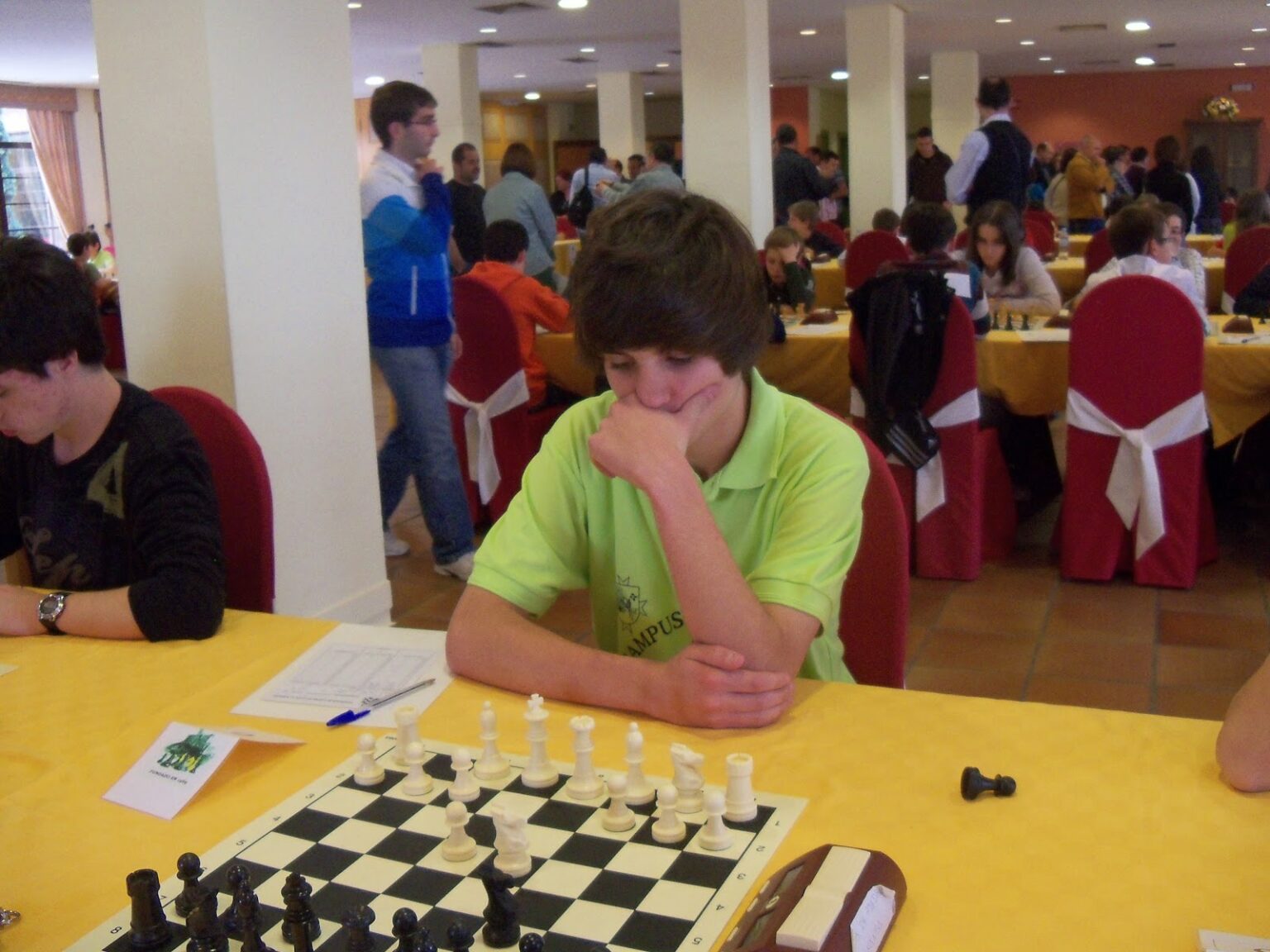 Ayer por la tarde comenzaba en Daimiel el Campeonato Escolar de Castilla-La Mancha con la participación de 5 ajedrecistas de nuestras escuelas. En la categoría cadete masculina se encuentran disputando este campeonato oficial 4 de nuestros jugadores de un total