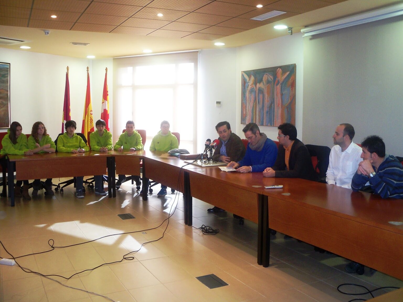 Un momento de la rueda de prensa celebrada en el ayto. de Alcázar de San Juan el 28 de diciembre Irene, Silvia, Isaac, Leo, Jesús Mª y Javier, son los actuales componentes del equipo