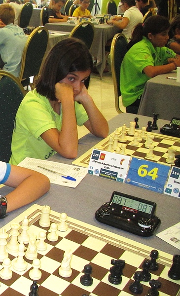 Isabel jugando una de sus partidasen Salobreña. (Imagen: FEDA) Durante los últimos seis días se ha celebrado en Salobreña el Campeonato de España sub-12 con un total de 9 rondas disputadas. Mª Isabel Marcos-Alberca Lizcano, en su primer año dentro