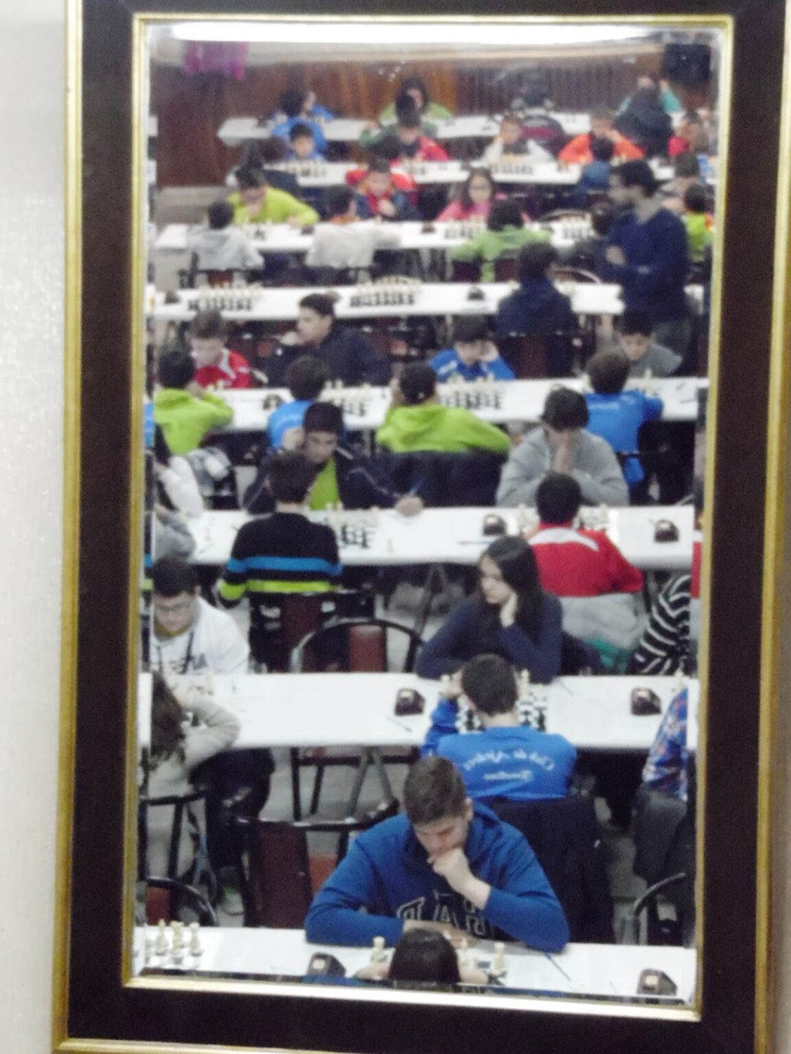 La sala de juego ante el espejo Poco más de un centenar de jugadores se han dado cita este domingo en Tomelloso para el inicio del Campeonato Provincial por Edades de Ciudad Real. La escuela de ajedrez de Alcázar participa