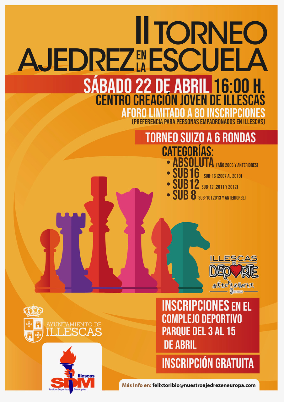El sábado 22 de abril los aficionados al ajedrez de cualquier edad tienen una cita para disfrutar de su deporte preferido en el II Torneo del Ajedrez en la Escuela que se celebrará en el Centro de Creación Joven