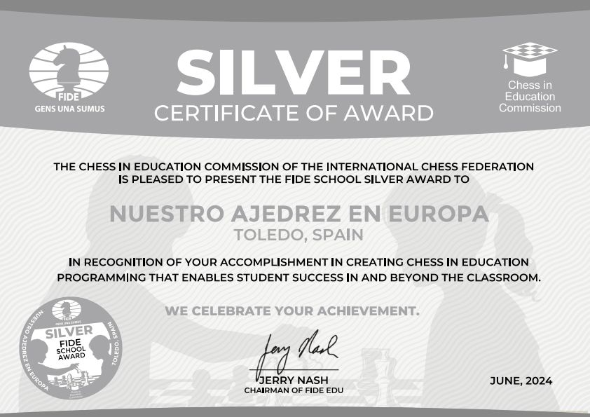 La medalla de plata del ajedrez en la educación Este mes de junio que está a punto de finalizar nos ha permitido dar visibilidad social y mediática al proyecto educativo que desarrollamos en colaboración con el ayuntamiento de Illescas en