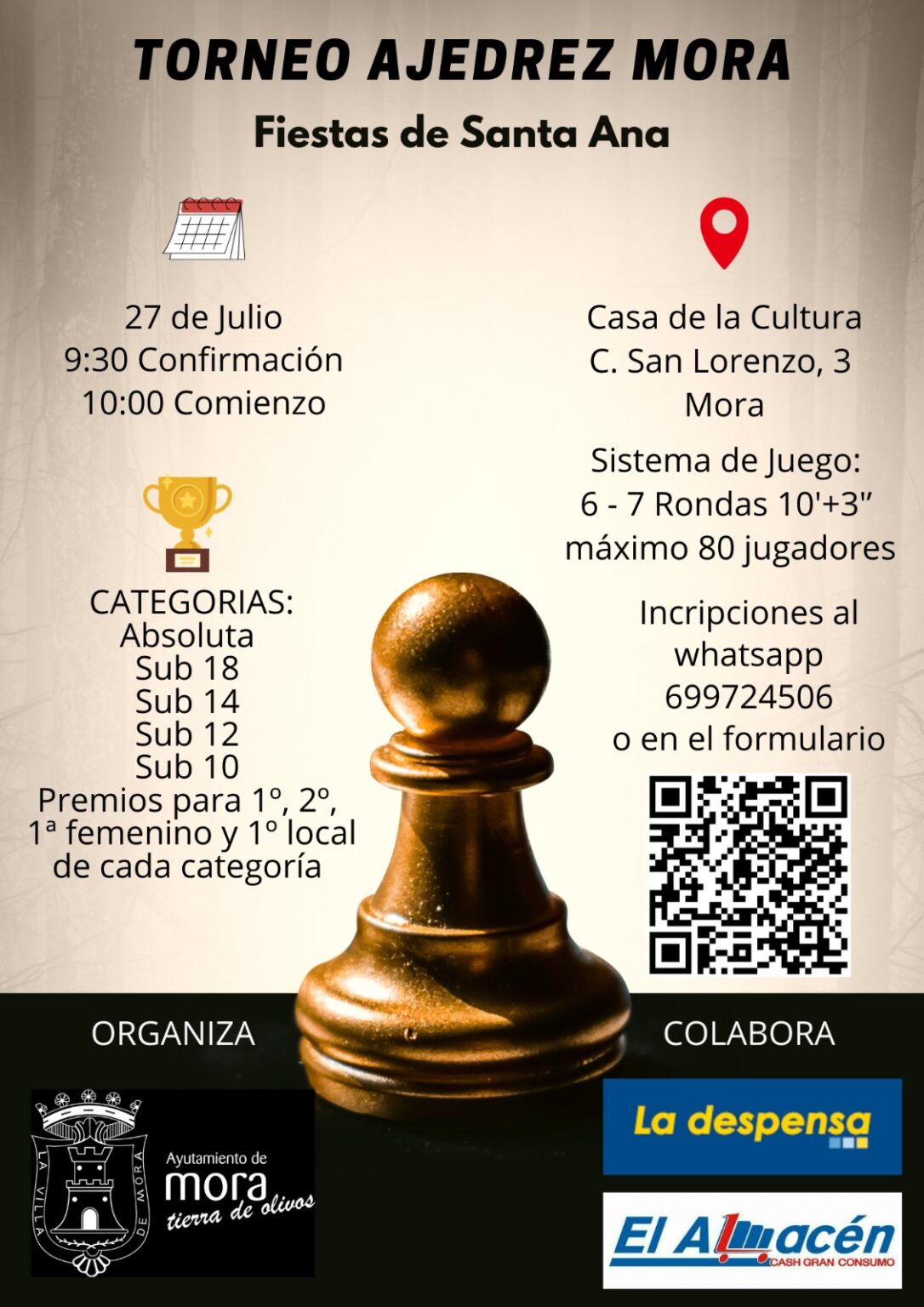 MORA Y CAMUÑAS CELEBRAN SUS TORNEOS DE AJEDREZ EL 27 Y 28 DE JULIO