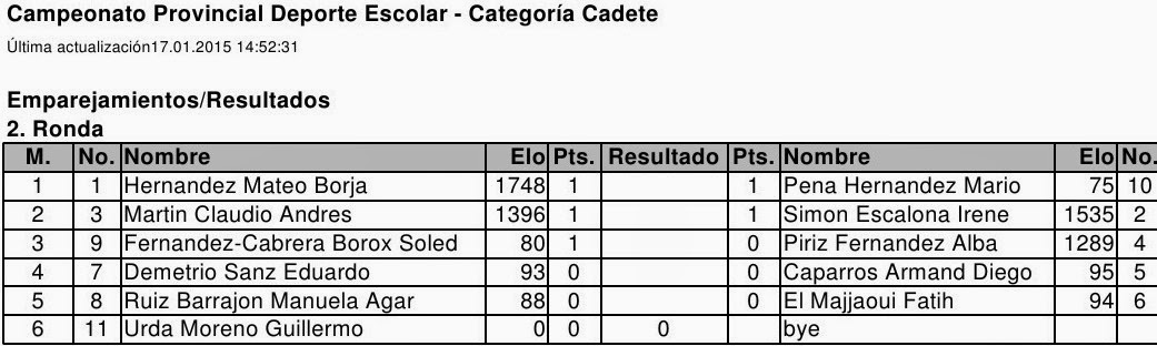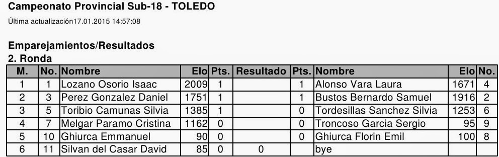 jugarse las 2 primeras rondas: Javier Valdepeñas con 2 puntos y Marta Espinosa