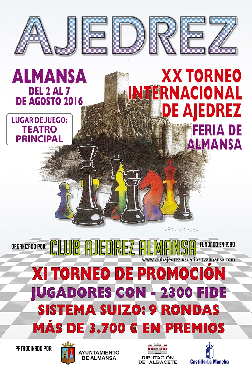 Ayer finalizaba en Almansa (Albacete) el torneo de promoción para jugadores con un elo FIDE inferior a 2300. La participación ha sido de 108 ajedrecistas entre los que se encontraban 4 pertenecientes a los clubes de Nuestro Ajedrez en Europa: Javier Valdepeñas, Isaac Lozano y los hermanos Alfredo y Gabriel Amador. Después de las 9 rondas disputadas, Javier Valdepeñas, quedaba en la posición 18º tras sumar 6 puntos. Con 5,5 puntos, en la plaza 23ª, se situaba Isaac Lozano. Alfredo Amador, conseguía 3,5 puntos lo que le dejaba en el puesto 75º, y Gabriel Amador en el 95º, logrando un total de 3 puntos.