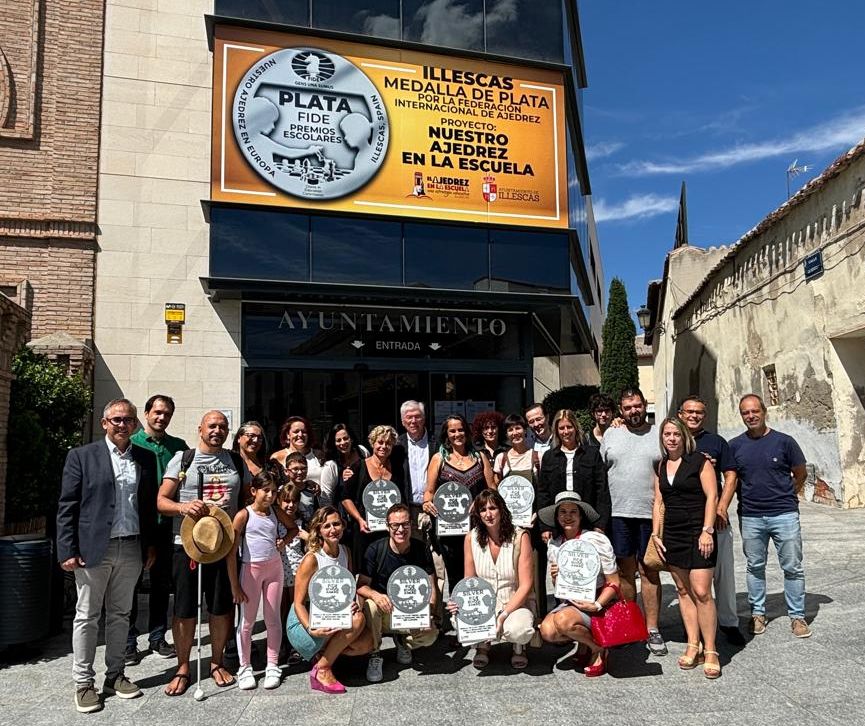 El viernes 6 de septiembre, el salón de plenos del ayuntamiento de Illescas acogió un acto lleno de momentos emocionantes que sirvió para reconocer la labor de los 7 colegios públicos illescanos: Martín Chico, La Constitución, Ilarcuris, Clara Campoamor, El Greco, Libertad y Rosa Chacel, en el desarrollo del proyecto «El ajedrez en la escuela, una estrategia educativa». El alcalde de Illescas, José Manuel Tofiño, acompañado de varios miembros del equipo de gobierno, valoró muy positivamente el trabajo realizado en los 8 cursos de implantación del proyecto y resaltó la Medalla de Plata otorgada por la FIDE al propio ayuntamiento y a «Nuestro Ajedrez en Europa», conjuntamente.