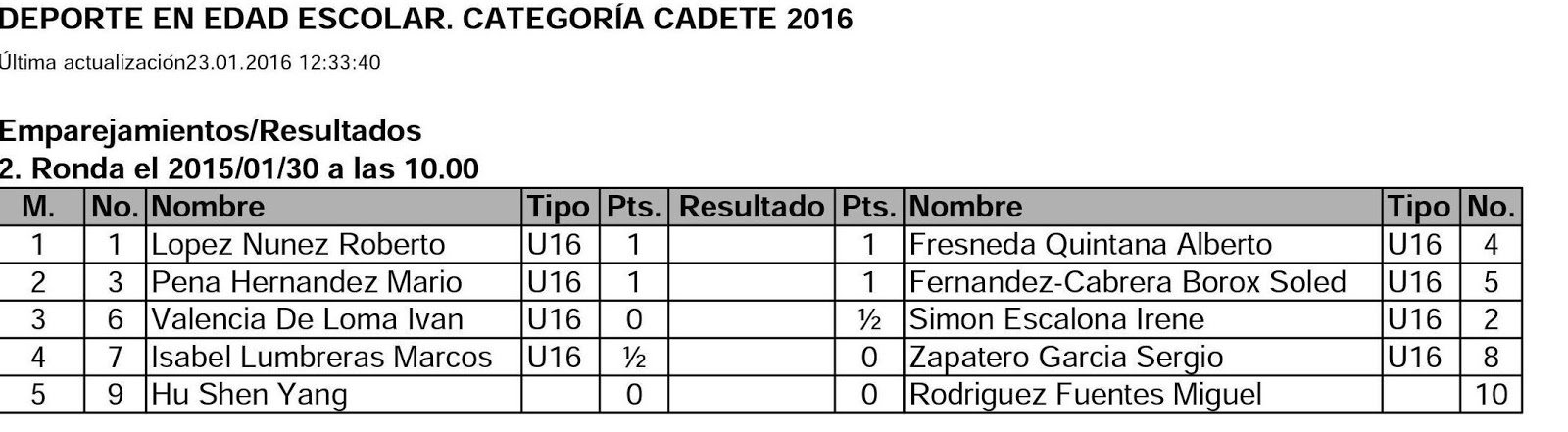 10 de la mañana queda el siguiente emparejamiento perteneciente a la 3ª ronda: