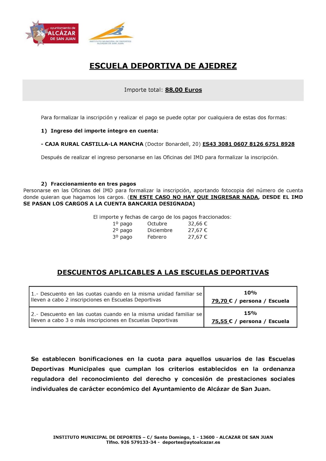 | Hoja informativa Escuela de Alcázar |