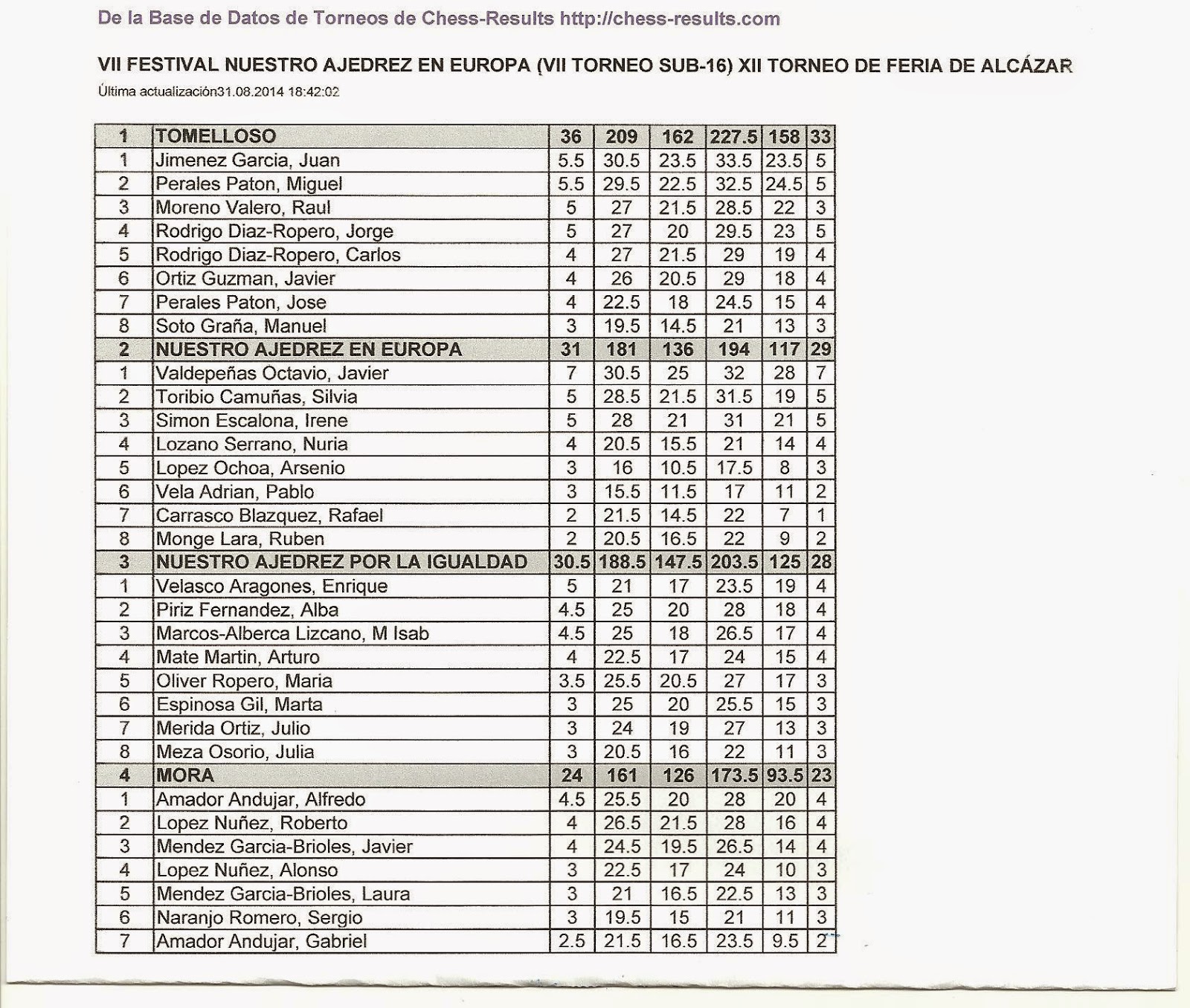 TOMELLOSO, con NUESTRO AJEDREZ EN EUROPA como subcampeón, NUESTRO AJEDREZ POR