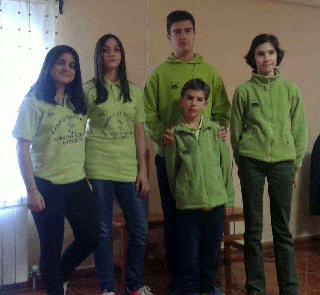| Los cinco ajedrecistas de nuestras escuelas que han disputado la fase regional del Deporte en Edad Escolar: Isabel, Clara, Roberto, Alonso y Nuria |