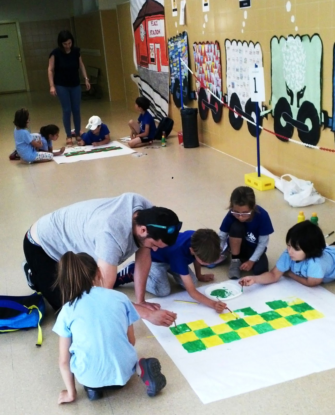 | Confeccionando tableros de ajedrez con temperas en el CEIP Ilarcuris |