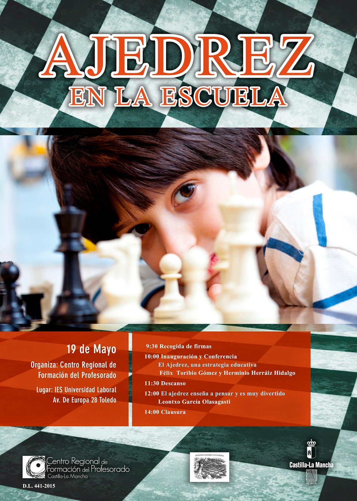 El próximo 19 de mayo se celebrará el evento de clausura del curso «EL AJEDREZ EN LA ESCUELA» organizado por el CRFP y por el proyecto «NUESTRO AJEDREZ EN EUROPA» para la formación del profesorado de la enseñanza primaria y secundaria de Castilla-La Mancha. Finalmente será el salón de actos del IES Universidad Laboral de Toledo el lugar que acogerá las conferencias con las que culminará este exitoso curso de iniciación para la implantación del ajedrez en el sistema educativo regional. Después de dos meses y medio de formación enfocada a conocer la utilidad pedagógica del ajedrez y al aprendizaje de los elementos básicos que conforman el juego, los 60 participantes del curso más otros 200 asistentes, tendrán la oportunidad de disfrutar de las conferencias de Leontxo García, uno de los divulgadores principales del deporte de la mente en el mundo, así como de las preparadas por el GM Herminio Herráiz y por Félix Toribio, como ponentes de este primer módulo de iniciación. El acto tiene previsto su comienzo a las 10 de la mañana y su conclusión a las 2 de la tarde.