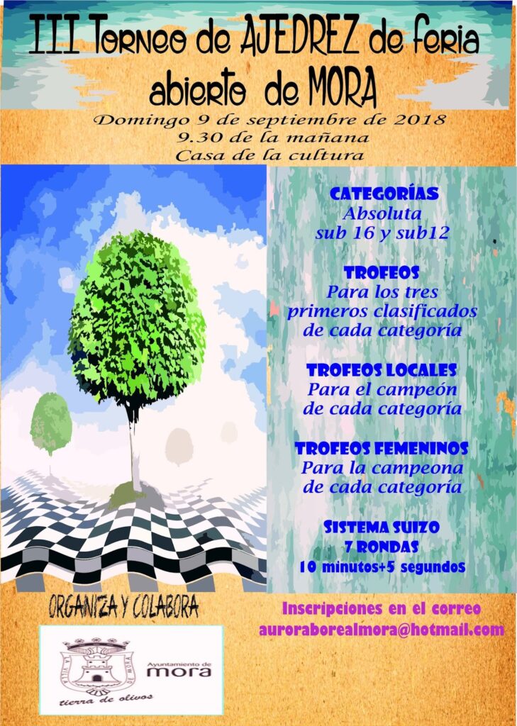 La casa de la cultura de Mora albergará la 3ª edición del Torneo de Feria el domingo 9 de septiembre en jornada de mañana.
