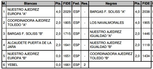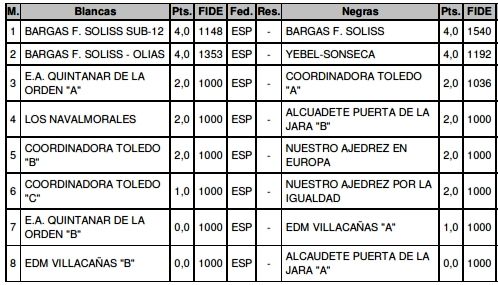 El emparejamiento de la ronda 3 que se jugará el domingo 11 de noviembre por la mañana es el siguiente: