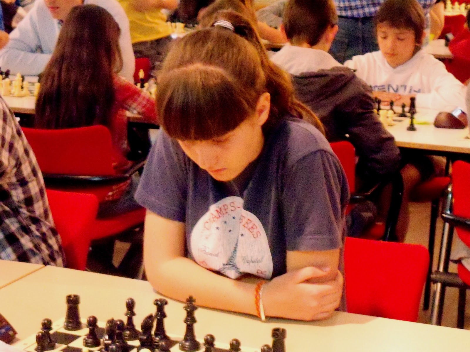 mayor participación de toda la región en cuanto a ritmo semirrápido en un único día se refiere. El resultado, después de las 6 rondas, convirtió al jugador de Nambroca Luis Miguel Méndez en el nuevo campeón y a Clara Jiménez en la campeona local absoluta. Por nuestra parte, 11 fueron los chicos y chicas que disfrutaron de esta jornada de ajedrez, con el aliciente de unos resultados muy buenos para muchos de ellos. En este aspecto destacamos el título de campeona sub-16 logrado por Irene Simón y los 3 puntos sumados por Isabel Marcos-Alberca, Alba Píriz, Julia Meza,