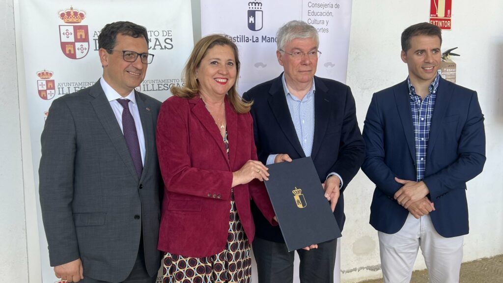 Ayer, jueves por la tarde, en el Espacio Escénico Cubierto de Illescas se firmó el convenio de colaboración que desarrolla el proyecto del ajedrez en la escuela, por parte de las dos administraciones que le ofrecen la cobertura legal y financiera. De esta manera, la Consejería de Educación, Cultura y Deportes, representada por la consejera, Rosana Rodríguez, y el ayuntamiento de Illescas, representado por su alcalde, José Manuel Tofiño, rubricaron el nuevo convenio para el periodo 2023-2026. Al acto asistieron el delegado de la JCCM en Toledo, Javier Úbeda, el Dtor. Gral. de Deportes, Carlos Yuste, y el concejal de Educación del consistorio de Illescas, Carlos Amieba.
