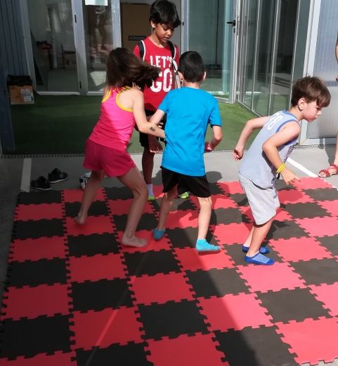 | Los peques tienen oportunidad de jugar sobre un tablero gigante |