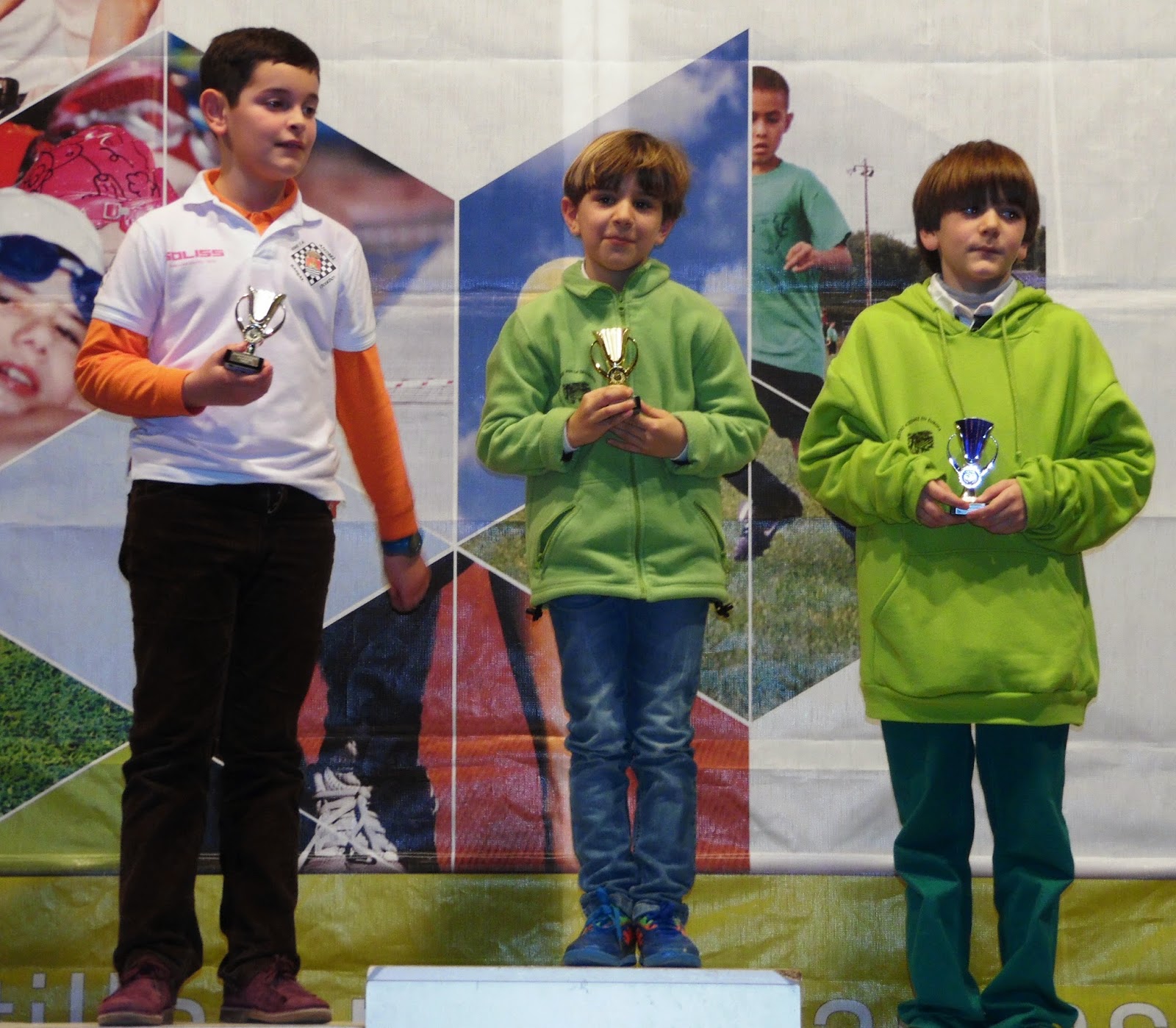 | Las jóvenes promesas de nuestro ajedrez, Alonso López y Gabriel Amador, de verde, campeón y tercer clasificado del sub-10 |
