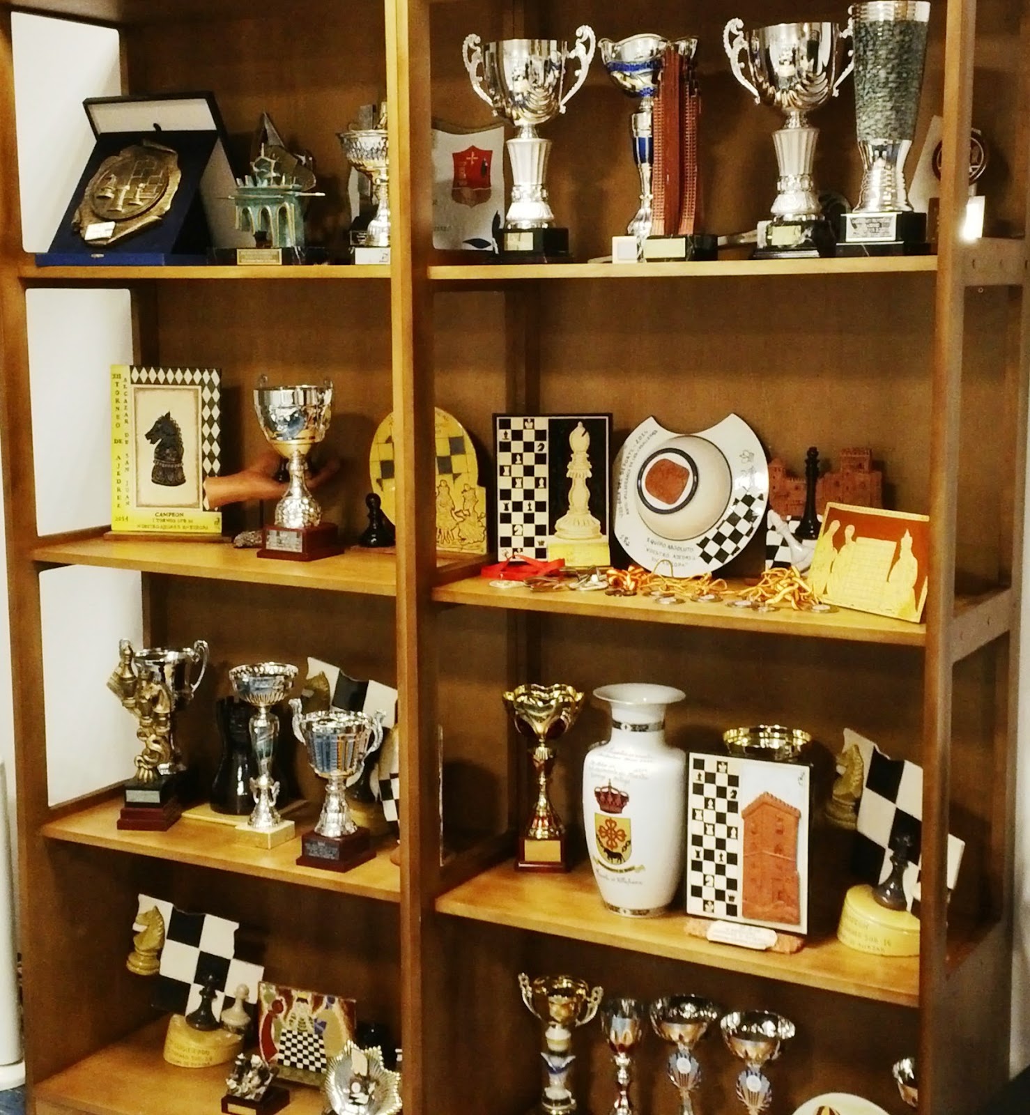 | La nueva exposición de los premios y trofeos colectivos de NUESTRO AJEDREZ EN EUROPA en el aula de la escuela de Villafranca |