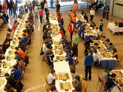 Las imágenes que publicamos corresponden al Palacio de Cristal del Hotel Bali de Benidorm, sede de este tercer Campeonato de España. En esta magnífica sala de juego, ayer martes, se desarrollaron la cuarta y quinta ronda de esta competición con unos excelentes resultados para nuestros 2 equipos. Por la mañana, los chicos de «Nuestro Ajedrez en Europa», vencían por 3 a 1 al «Club Ruy López de Elda», mientras que durante la tarde obtenían un 4 – 0 frente al «Club Actur Rey Fernando» de Aragón. Estas victorias lo elevan a la 6ª plaza de la clasificación provisional a falta de la última ronda, después de conseguir 13,5 puntos de partida. Hoy, a partir de las 9,30 de la mañana y retransmitido por internet, optarán a clasificarse entre los 5 mejores equipos de España, combatiendo frente al «Club d’Escacs San Marti» de Cataluña que partía como nº 1 del ranking inicial. A esta estupenda noticia hay que añadir la sobresaliente actuación del jovencísimo equipo de «Nuestro Ajedrez por la Igualdad», que de ser vigésimo en el orden de fuerza inicial de los equipos, ha pasado a ocupar la 14ª posición tras la disputa de la 5ª ronda, habiendo logrado una victoria por 3-1 contra los valencianos del Xabia, ayer por la tarde, y una derrota por la mínima diferencia de 1,5 a 2,5 ante el Santurtzi de Euskadi en la sesión matinal. Cumplidas las mejores espectativas que cabía esperar de este equipo de promesas, la 6ª ronda les ha deparado el emparejamiento con el experimentado»Club Virgen de Guadalupe» de Murcia.