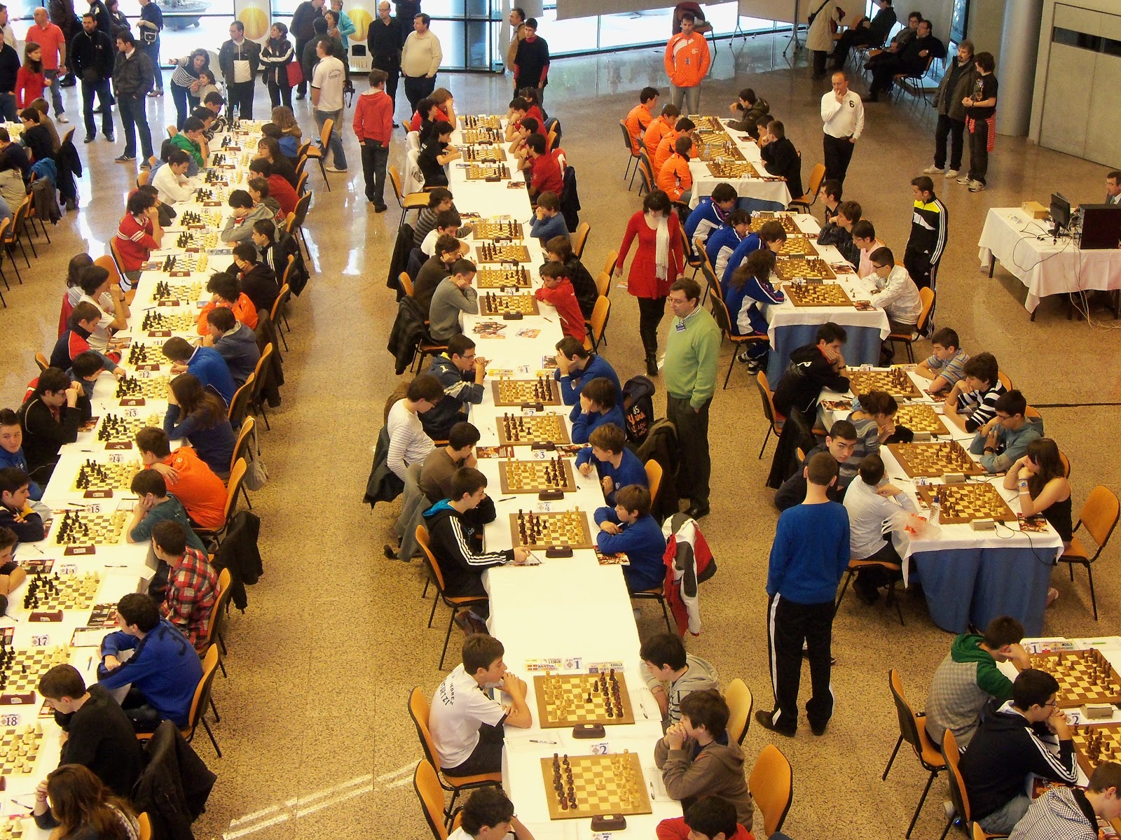 Las imágenes que publicamos corresponden al Palacio de Cristal del Hotel Bali de Benidorm, sede de este tercer Campeonato de España. En esta magnífica sala de juego, ayer martes, se desarrollaron la cuarta y quinta ronda de esta competición con unos excelentes resultados para nuestros 2 equipos. Por la mañana, los chicos de «Nuestro Ajedrez en Europa», vencían por 3 a 1 al «Club Ruy López de Elda», mientras que durante la tarde obtenían un 4 – 0 frente al «Club Actur Rey Fernando» de Aragón. Estas victorias lo elevan a la 6ª plaza de la clasificación provisional a falta de la última ronda, después de conseguir 13,5 puntos de partida. Hoy, a partir de las 9,30 de la mañana y retransmitido por internet, optarán a clasificarse entre los 5 mejores equipos de España, combatiendo frente al «Club d’Escacs San Marti» de Cataluña que partía como nº 1 del ranking inicial. A esta estupenda noticia hay que añadir la sobresaliente actuación del jovencísimo equipo de «Nuestro Ajedrez por la Igualdad», que de ser vigésimo en el orden de fuerza inicial de los equipos, ha pasado a ocupar la 14ª posición tras la disputa de la 5ª ronda, habiendo logrado una victoria por 3-1 contra los valencianos del Xabia, ayer por la tarde, y una derrota por la mínima diferencia de 1,5 a 2,5 ante el Santurtzi de Euskadi en la sesión matinal. Cumplidas las mejores espectativas que cabía esperar de este equipo de promesas, la 6ª ronda les ha deparado el emparejamiento con el experimentado»Club Virgen de Guadalupe» de Murcia.