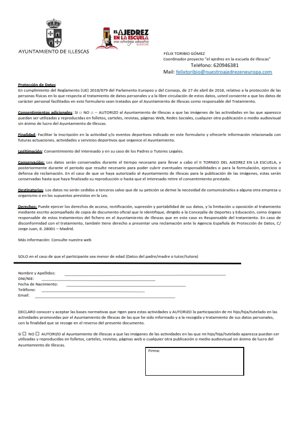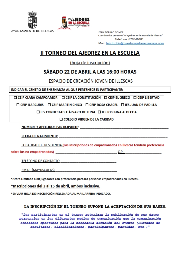 Aquí tenéis la ficha de inscripción y las bases de los torneos. Recordad que el periodo de inscripción es del 3 al 15 de abril.