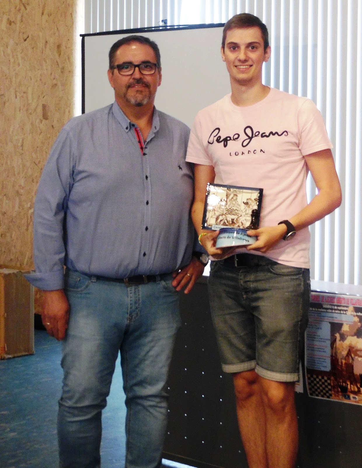 | Jorge Simón, ganador del torneo, junto al alcalde de Villafranca, Julián Bolaños |