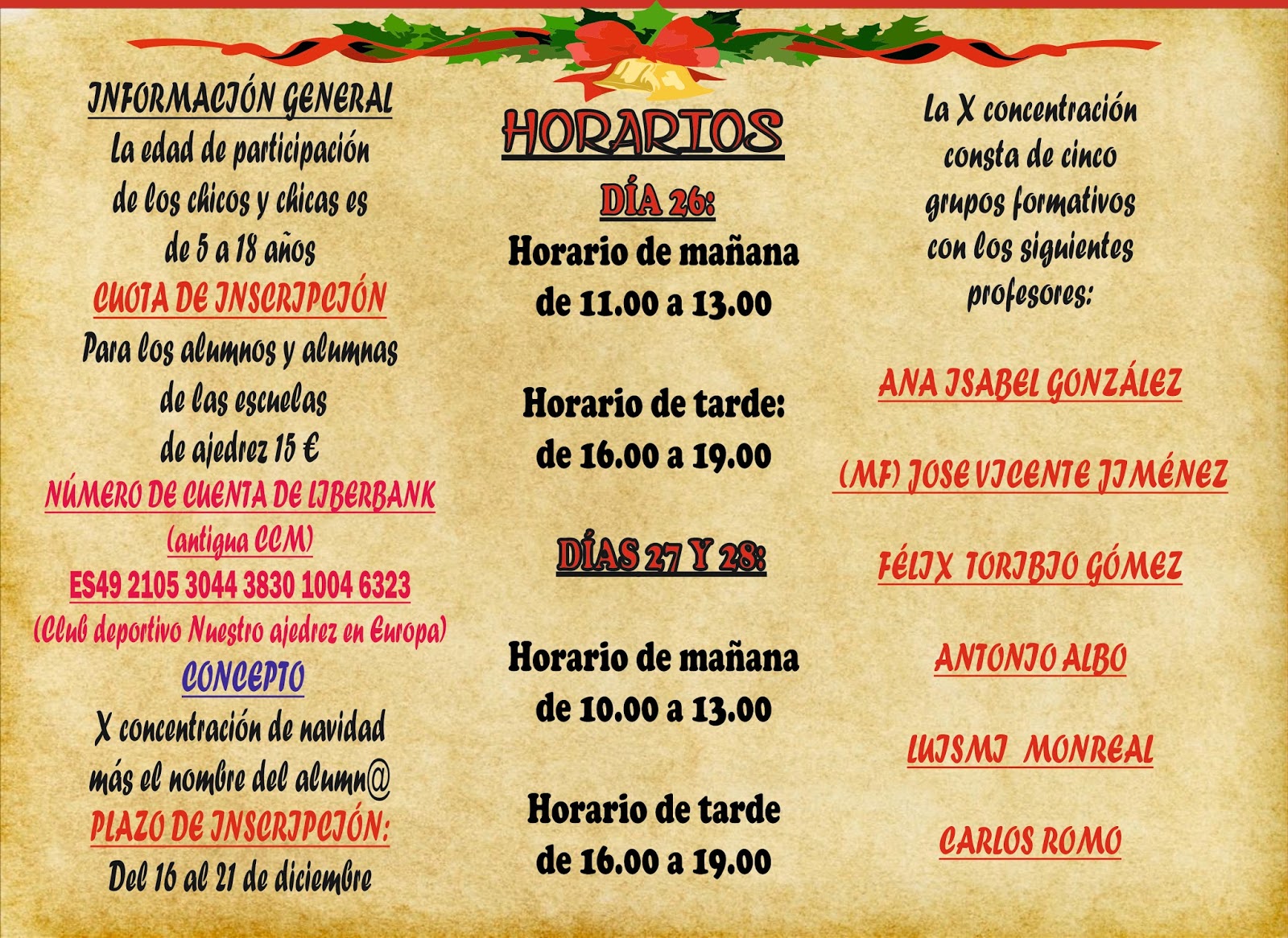 Publicamos toda la información de la 10ª Concentración de Navidad que se celebrará en la casa de la cultura de Villafranca de los Caballeros del 26 al 28 de diciembre. Las clases serán impartidas en jornada de mañana y tarde, de acuerdo con los horarios que se detallan en el siguiente tríptico: