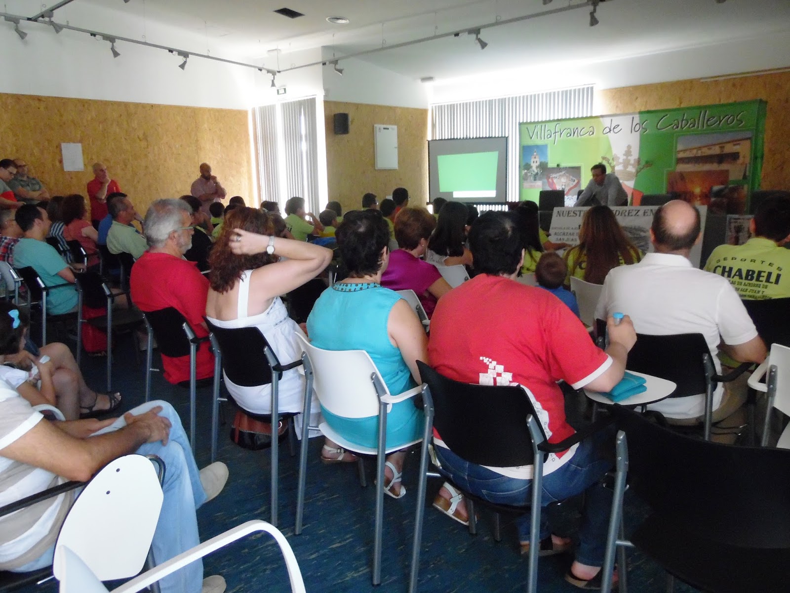 | Una imagen del salón de actos de la Casa de la Cultura de Villafranca al comienzo de la proyección del vídeo de clausura |
