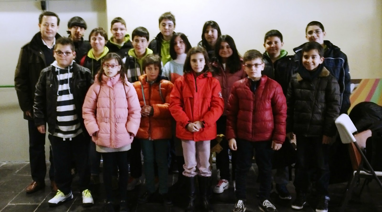 | Los alumnos de la escuela de Alcázar en la sala de juego de Miguelturra |