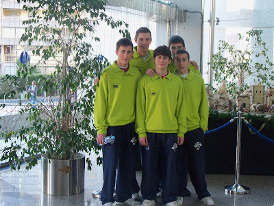 Los 5 chicos que vemos en la foto han sido los artífices de los importantes resultados conseguidos durante 2010 en las competiciones por equipos en las que hemos participado, culminando con la novena plaza en este campeonato nacional por clubes. Con ello, Nuestro Ajedrez en Europa, mejora en una posición el lugar que ocupó en 2009, a pesar de contar la competición con una mayor participación global, se ha pasado de 16 a 20 equipos, y de haberse elevado notablemente el nivel ajedrecístico de los clubes, en ocasiones con el fichaje de jóvenes valores de otras naciones. Es todo un dato conocer que, de entre los 6 rivales con los que nos hemos enfrentado, hemos tenido el privilegio de medirnos con los actuales subcampeones de España y campeones de 2009, Cajacanarias, así como con los campeones de 2008, Solvay de Cantabria, y para terminar, ya en la última ronda, cuando aspirábamos incluso a la medalla de bronce, con los favoritos para el título y terceros en la clasificación final, el Club d’escacs Sant Marti de Cataluña compuesto por 4 de los jugadores con mayor valoración elo de España. Además, dejando al margen los resultados, es necesario informar del enorme espíritu de lucha de los 106 jugadores que han disputado este torneo, desde el minuto 1 de la primera ronda hasta el último segundo de la ronda final. Todo un ejemplo de tesón y solidario compañerismo.