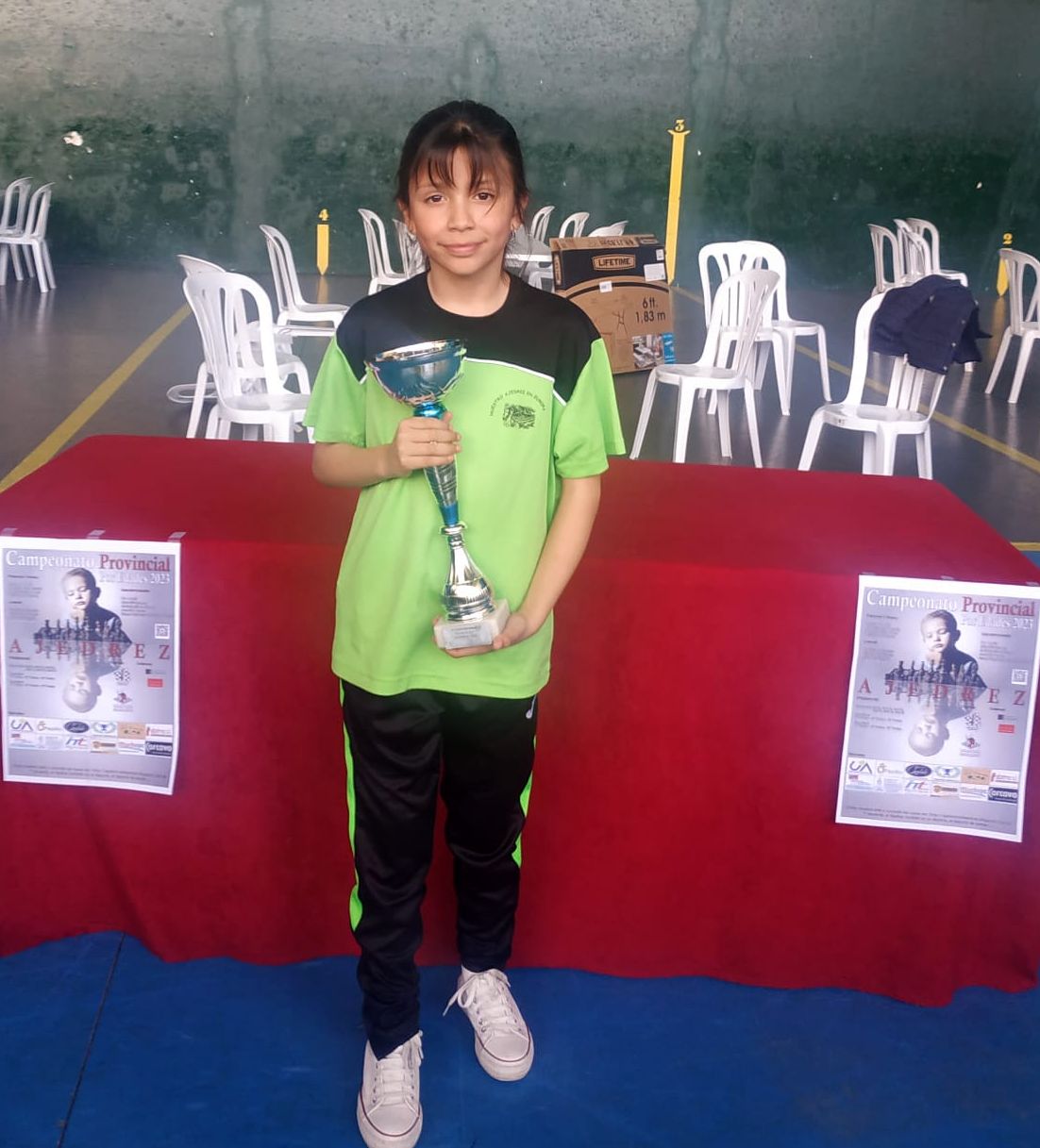| Elvira con el trofeo de campeona sub12 de C. Real |