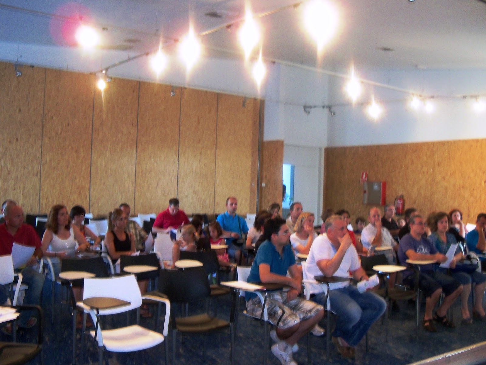 | Aspecto de la sala de conferencias de Villafranca de los Caballeros antes de comenzar la reunión |
