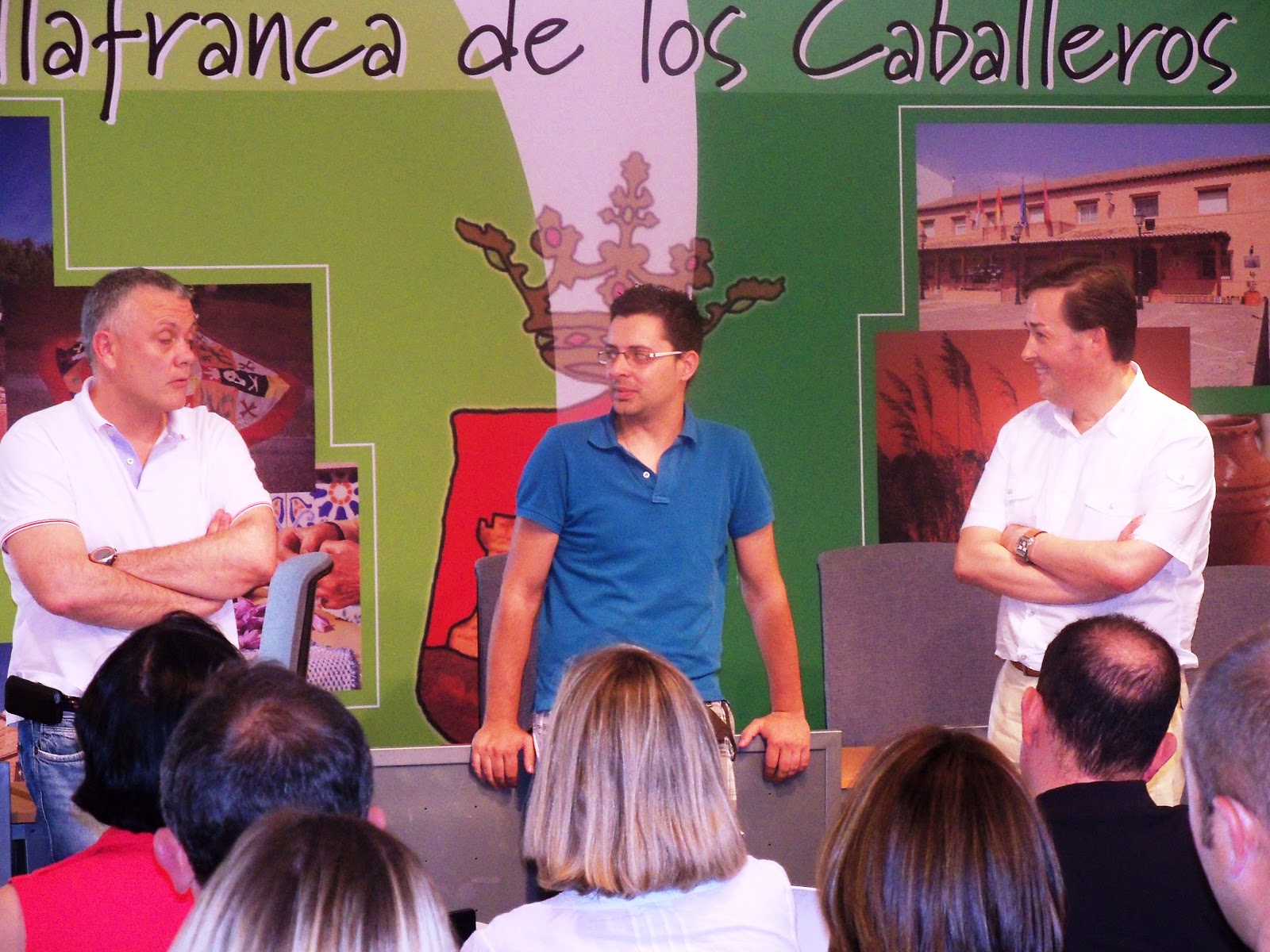 | En Villafranca acudieron a la reunión el alcalde Andrés Beldad, en el centro de la foto, y el concejal de deportes Juanjo Marchante, que aparece a la izquierda de la imagen |