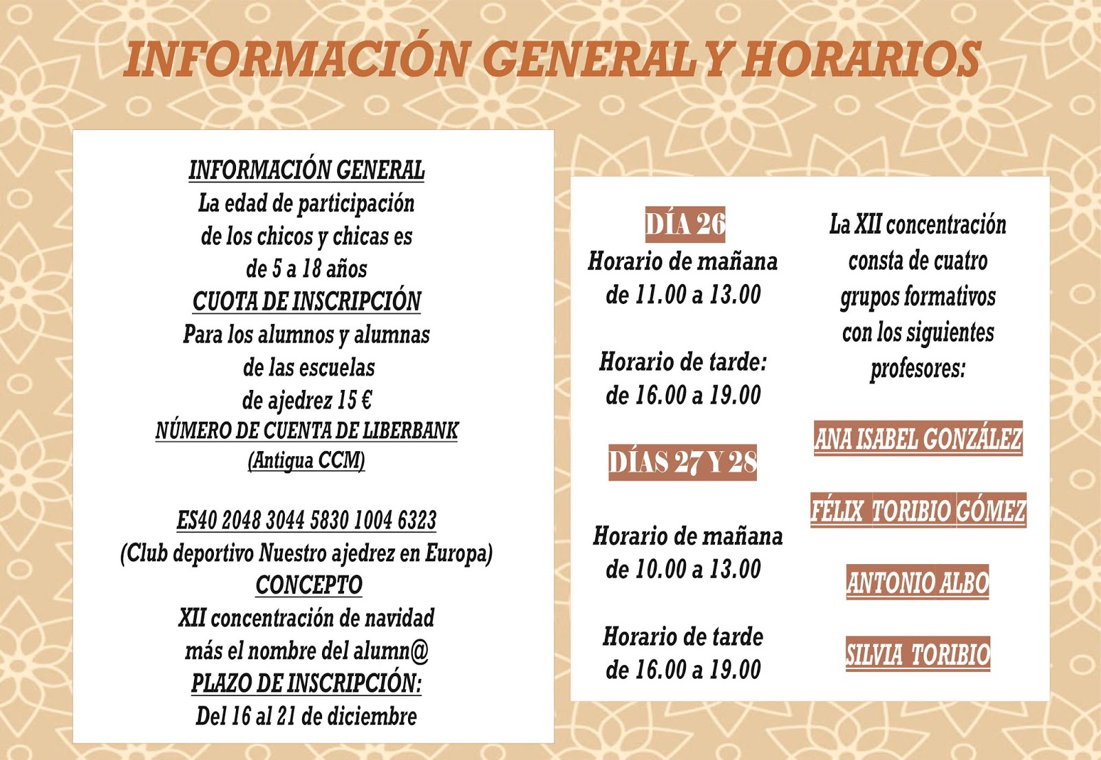 Los alumnos de las escuelas de ajedrez de Alcázar de San Juan y Villafranca tienen una nueva oportunidad para perfeccionar su técnica con los entrenadores y monitores de Nuestro Ajedrez en Europa. Estos 3 días de intensa preparación forman parte de las actividades formativas que con carácter anual desarrolla el proyecto manchego. Se mantienen los grupos de iniciación, perfeccionamiento y tecnificación de anteriores ediciones, facilitando la participación de todo el alumnado con la simbólica tasa de 15 €.